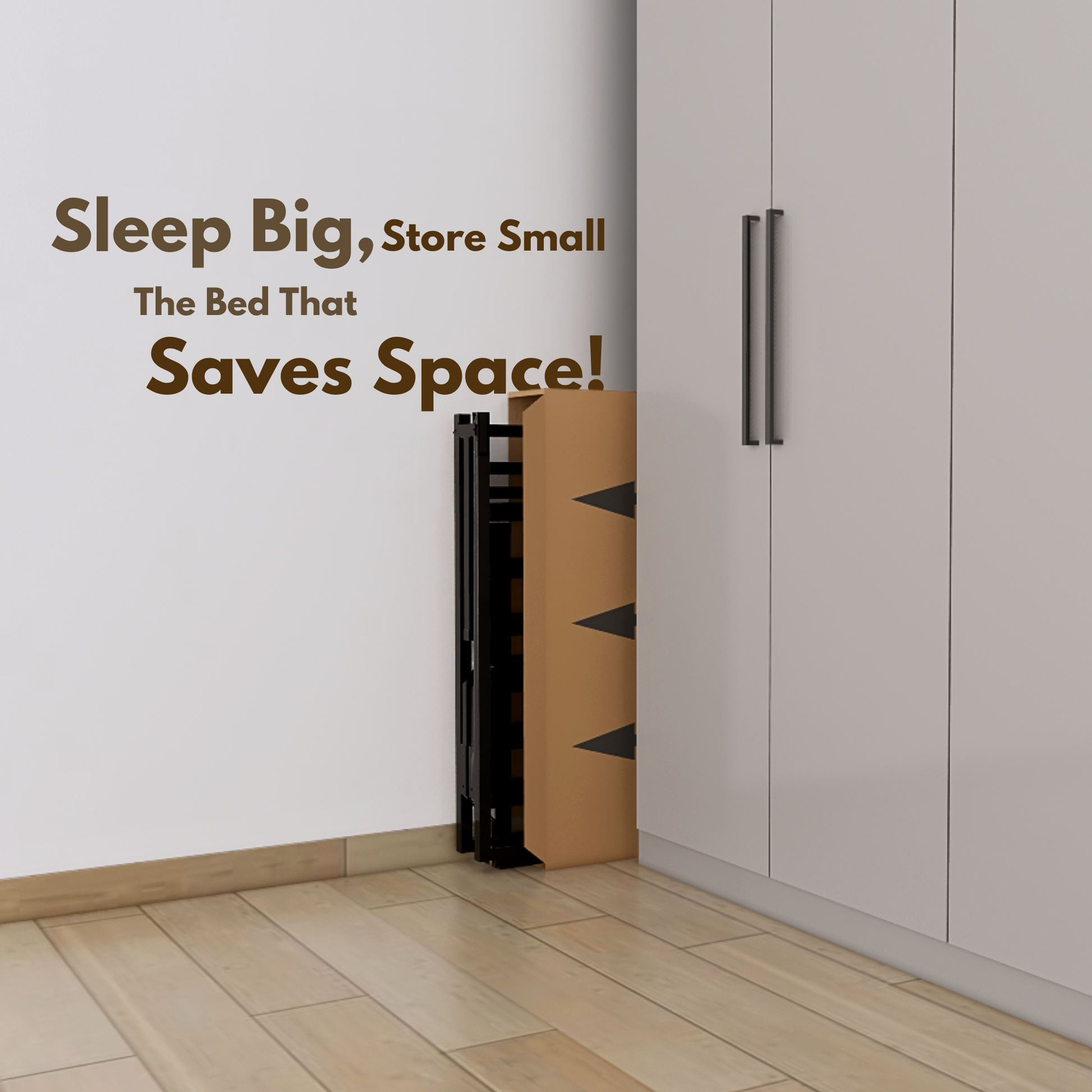 Elevate your living space with the ARLAVYA Folding Metal Queen Size Bed – where practicality meets sophistication. Experience the perfect combination of comfort, functionality, and smart design, all in one innovative piece of furniture. Sleep better, live smarter, with ARLAVYA.